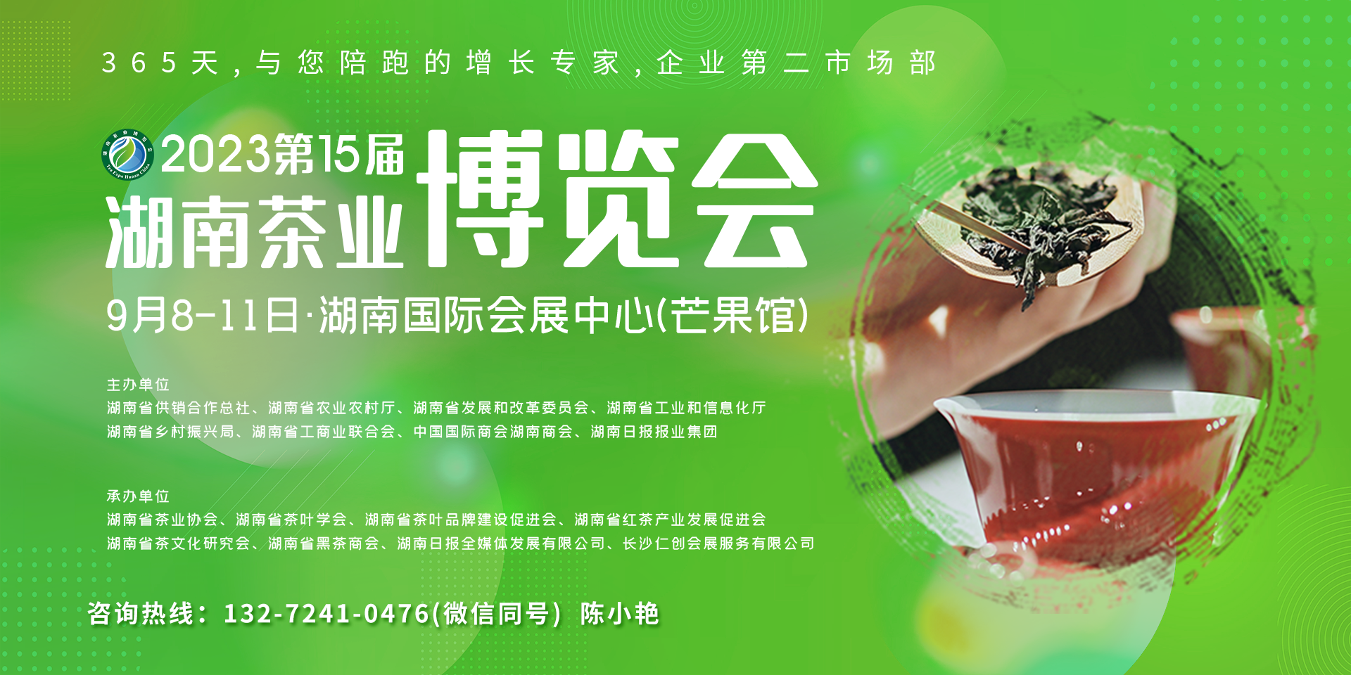 2023第十五屆湖南茶業(yè)博覽會9月8-11日·湖南國際會展中心(芒果館)主辦單位湖南省供銷合作總社、湖南省農業(yè)農村廳、湖南省發(fā)展和改革委員會、湖南省工業(yè)和信息化廳、湖南省鄉(xiāng)村振興局、湖南省工商業(yè)聯(lián)合會、中國國際商會湖南商會、湖南日報報業(yè)集團承辦單位湖南省茶業(yè)協(xié)會、湖南省茶葉學會、湖南省茶葉品牌建設促進會湖南省紅茶產業(yè)發(fā)...···